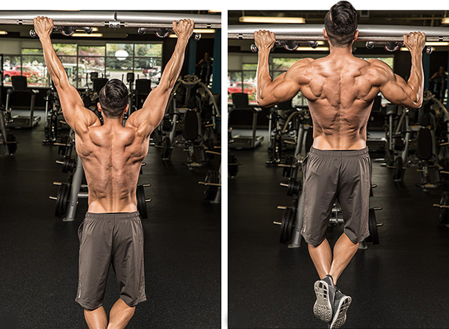1. Подтягивания широким, узким и средним хватом. Такие упражнения хорошо прокачивают верхнюю часть плечевого пояса.